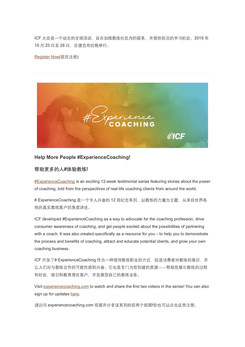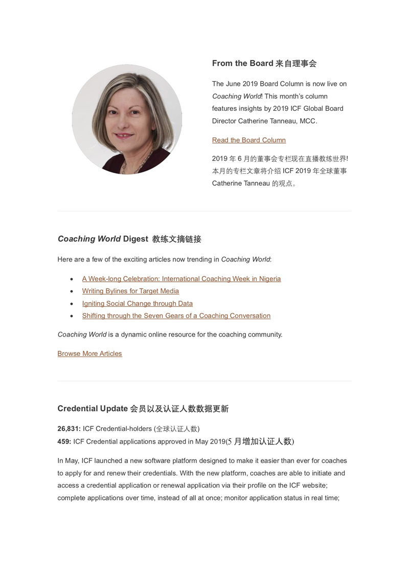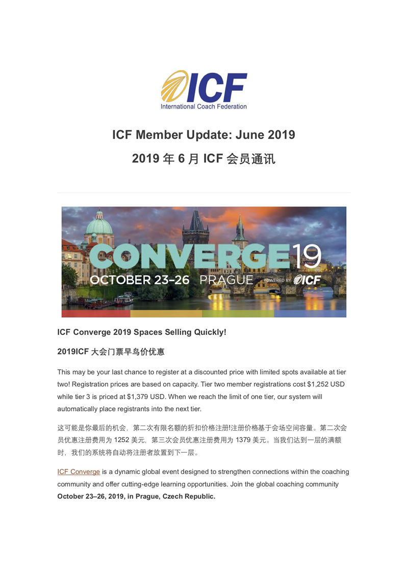 【2019年6月ICF会员简报】关于国际认证教练的更新信息
