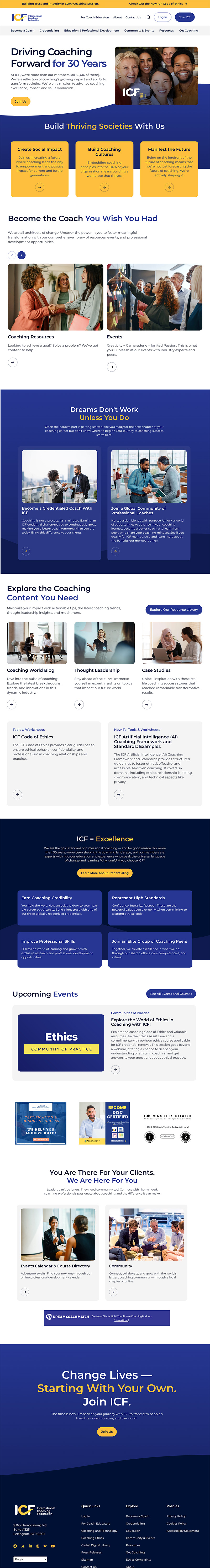 以下是 ICF 的新网站首页截图,请大家访问 https://coachingfederation.org/ 官网查看。