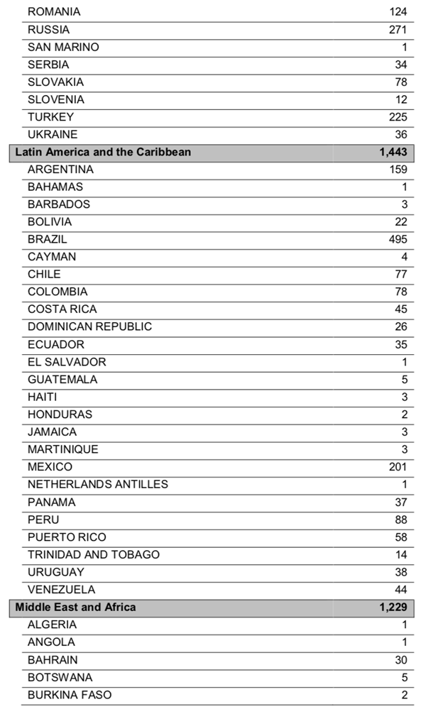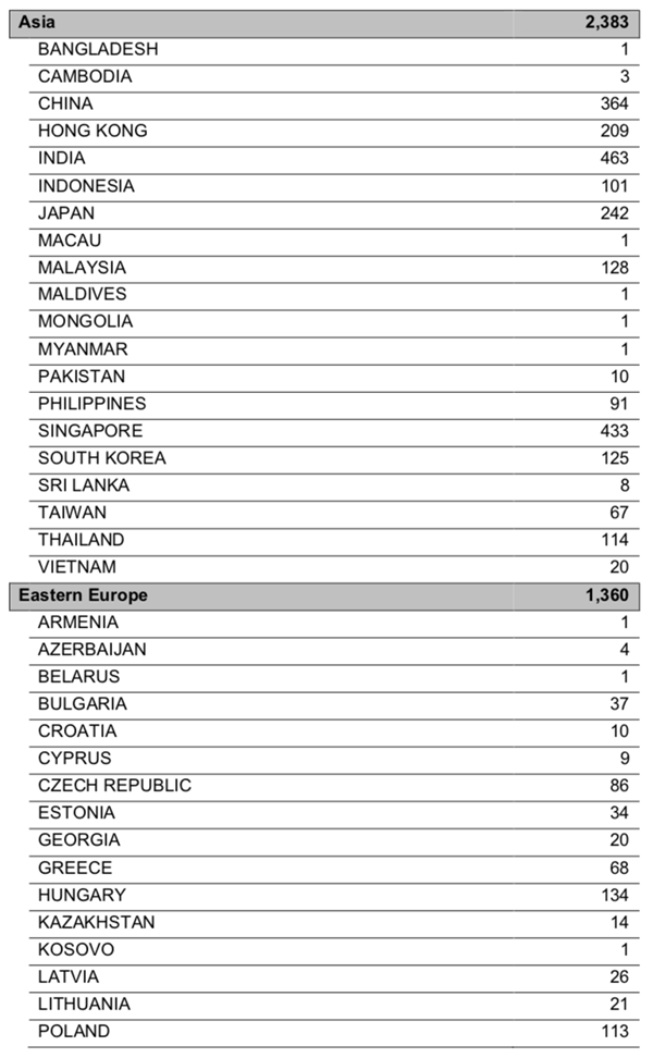 ICF认证教练按照国家和地区分类情况如下
