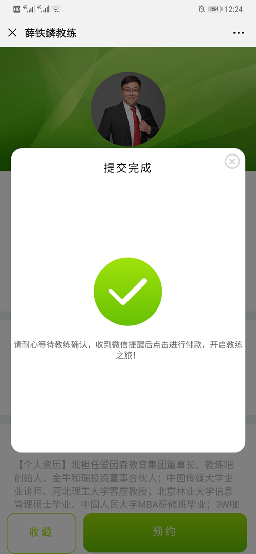 在教练家平台预约教练,可以通过微信公众号关注“教练家”微信公众号进行预约教练。其操作流程如下: