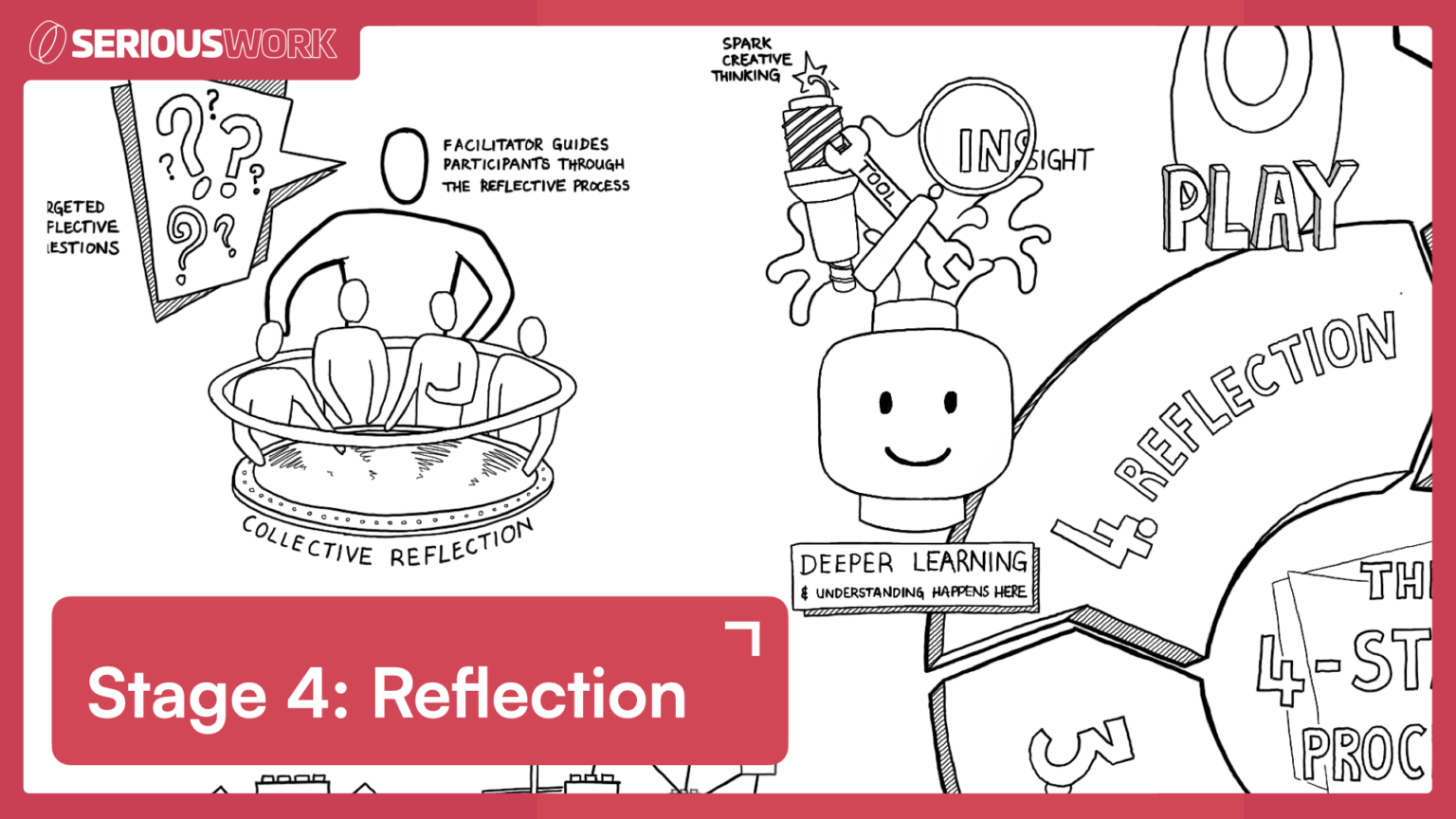 真正的学习发生在反思阶段。在这个阶段,小组可以深入探讨分享的内容,以期获得洞察力或激发创造性思维。乐高认真玩中的反思具有社交性,为参与者提供了相互学习的机会。