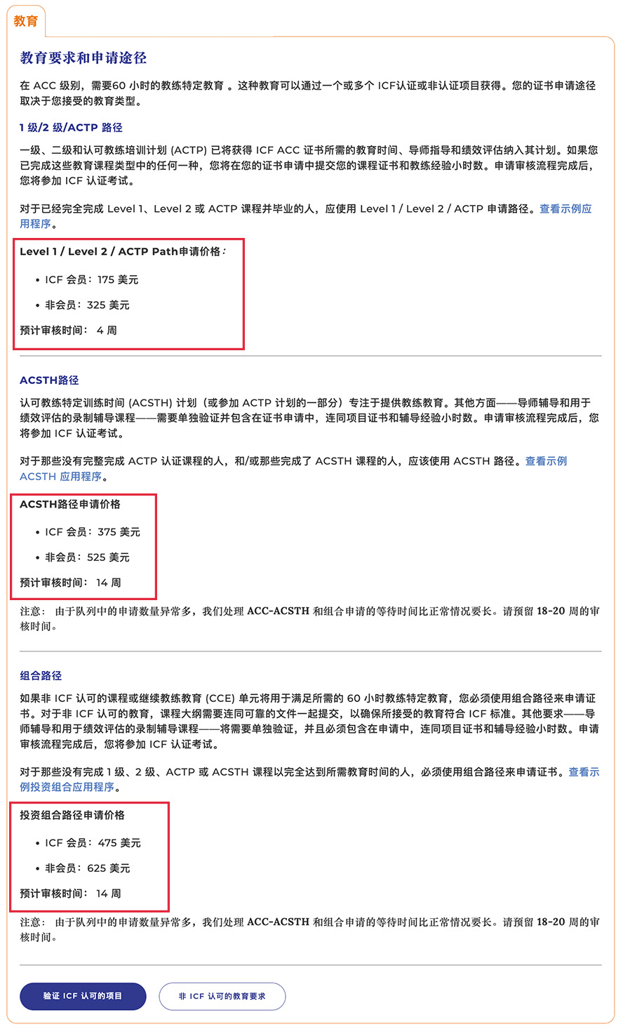 投资组合途径的学员(申请难度较大)申请费用:ICF会员 475美金 非ICF会员625美金