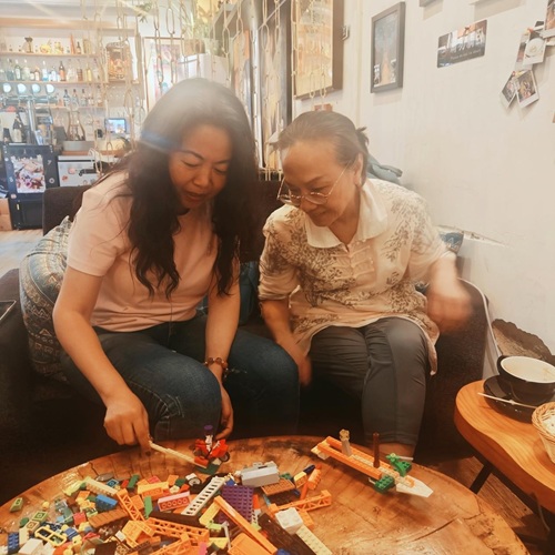 伴着雨声在胡同咖啡馆里,大家享受了咖啡,和小木桌上的“乐高汤”。