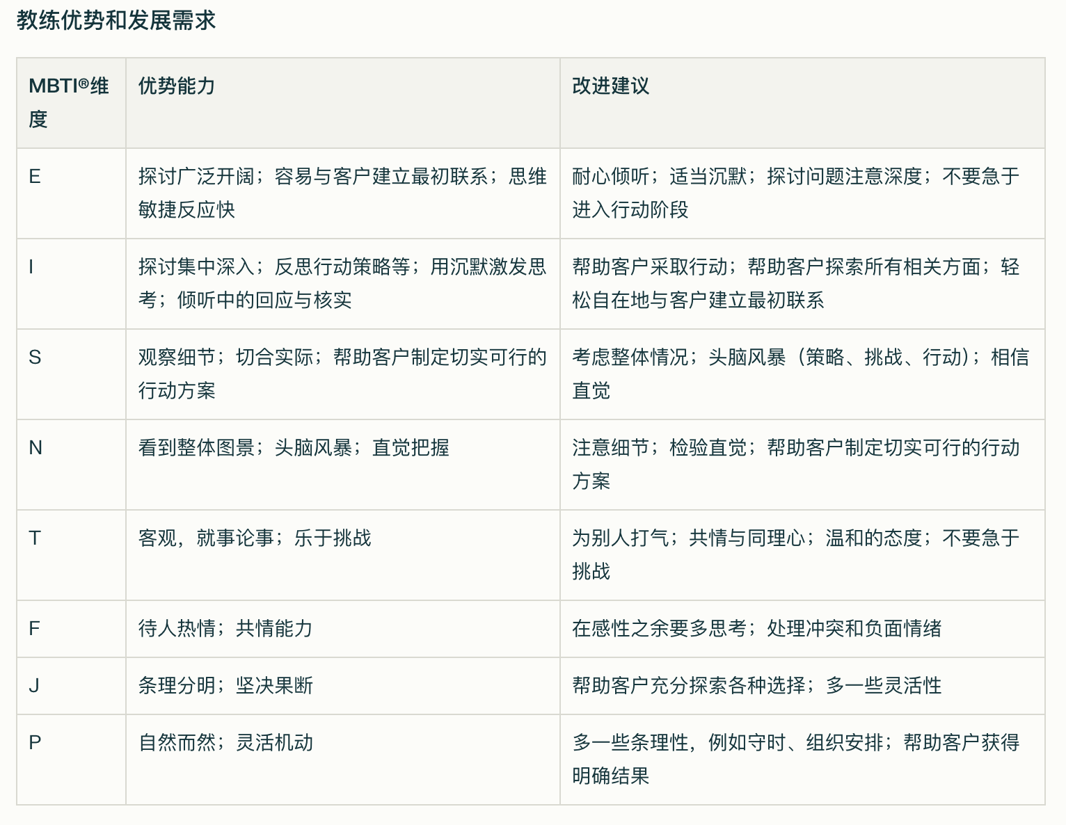 可能需要注意,天生习惯调整自己适应别人,这可能在某些情况下妨碍自己履行教练的角色
