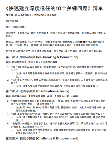 《快速建立深度信任的10个关键问题》清单