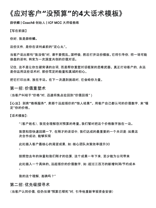 《应对客户“没预算”的4大话术模板》