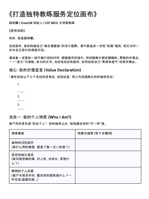 《打造独特教练服务定位画布》PDF
