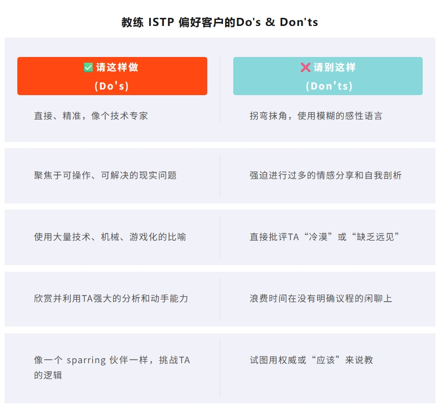 教练ISTP,你不能当一个循循善诱的老师,你得当一个能和TA一起“拆解系统”的顶级技术顾问。