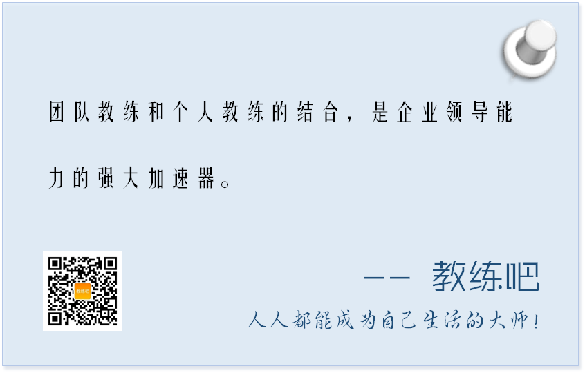 还有一点需要强调,团队教练和个人教练的结合,是企业领导能力的强大加速器。教练能够激发每位领导者,支持每位领导者,在自己的领导岗位上有效工作,支持执行领导团队的每一个成员尽可能有效地进行变革中的工作。