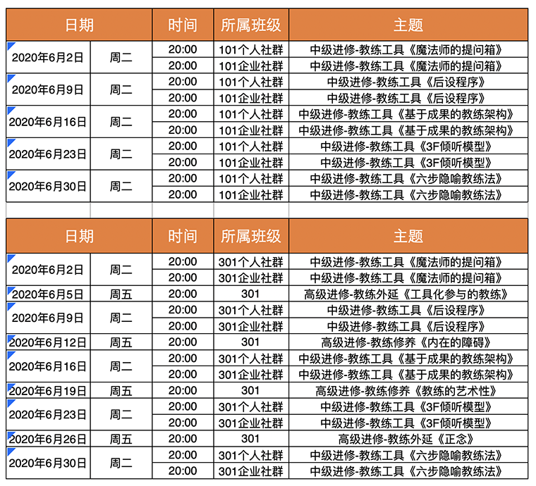 2020年6月主题课程时间安排表