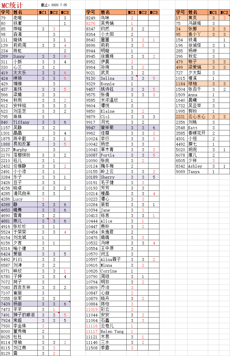 MC得A成绩单(统计截止7月25日)