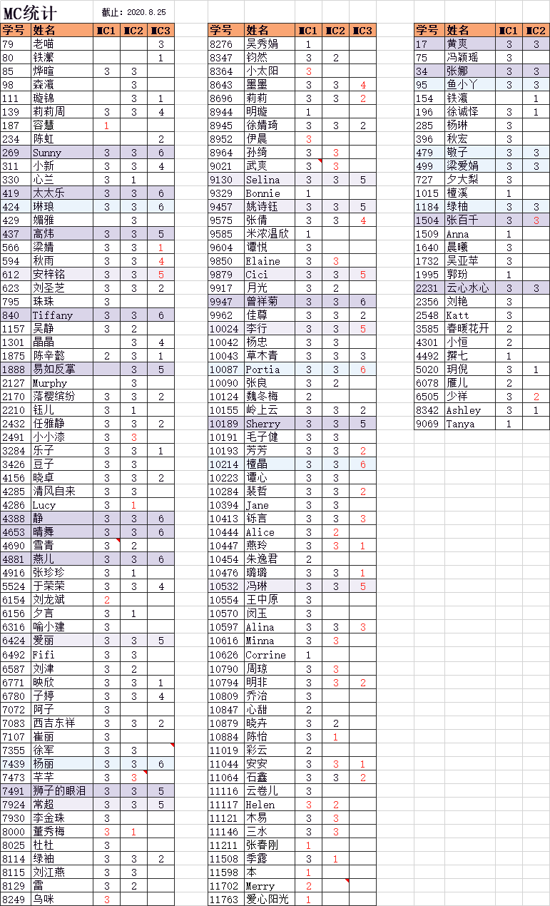 MC得A成绩单(统计截止8月25日)