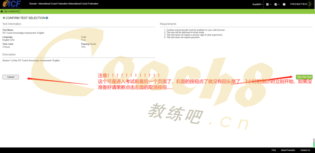 然后,点开考试系统链接,输入ICF提供给你的账号密码,一定要注意大小写。