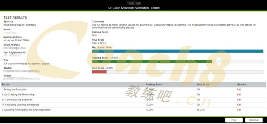 考试结束后当场出成绩,ICF也会自动给你发邮件通知,但是,真正的成绩审核通过、发电子证书、电子印章以及是否需要重新考试是需要10个工作日以内的等待期。