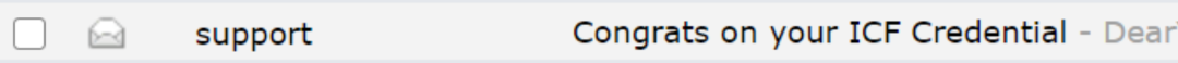 两天后,我便收到了ICF的通知,祝贺我考过,并颁发给我电子证书和电子印章。发件人的名称是support(也要留意邮箱的垃圾箱)。