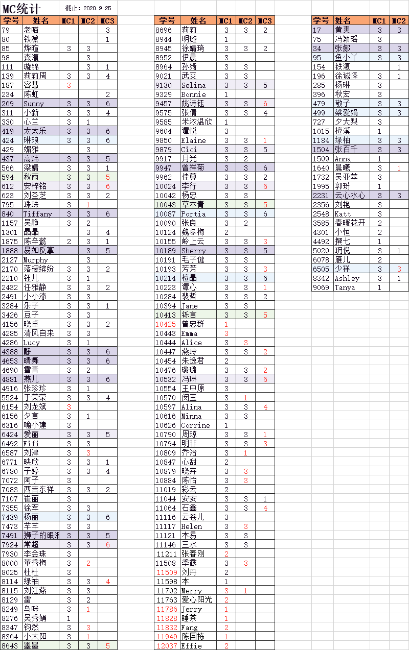 MC得A成绩单(统计截止9月25日)