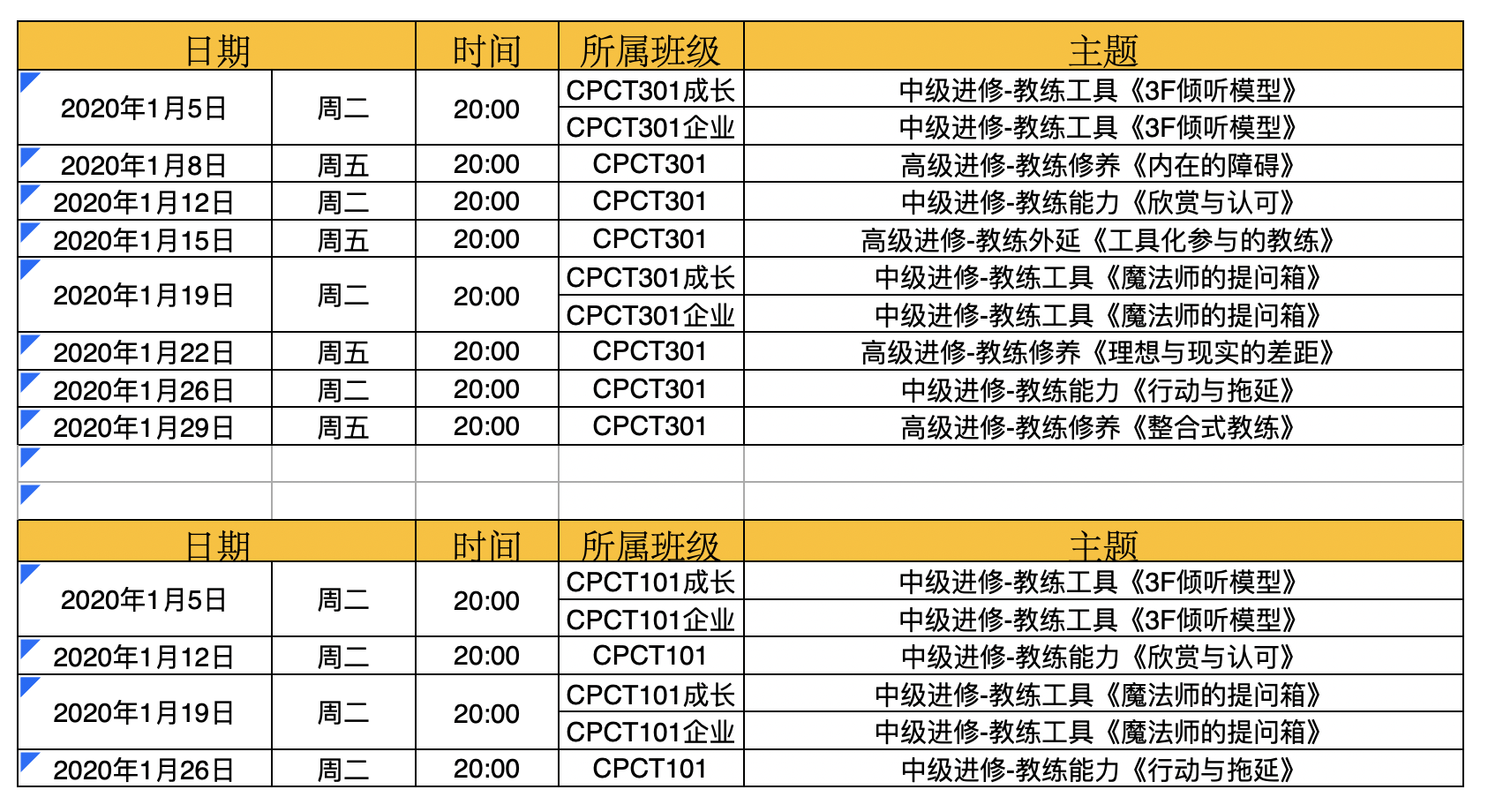 2021年1月主题课程时间安排表